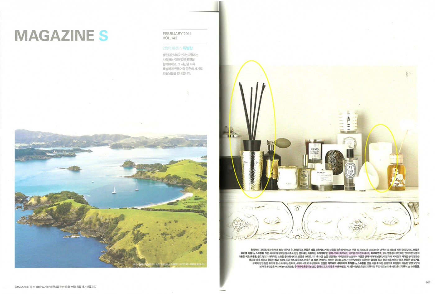 제목 매거진 S(Feb.2014) 타이틀 magazine S (Feb.2014) 등록일 2018-11-30 조회수 6317 - 공간을 향기롭게 가꾸는 홈프래그런스 -Baobab Collection : 일렉트럼 dark 디퓨저(케프런)Aromaco : LED 캔들(M) 목록으로